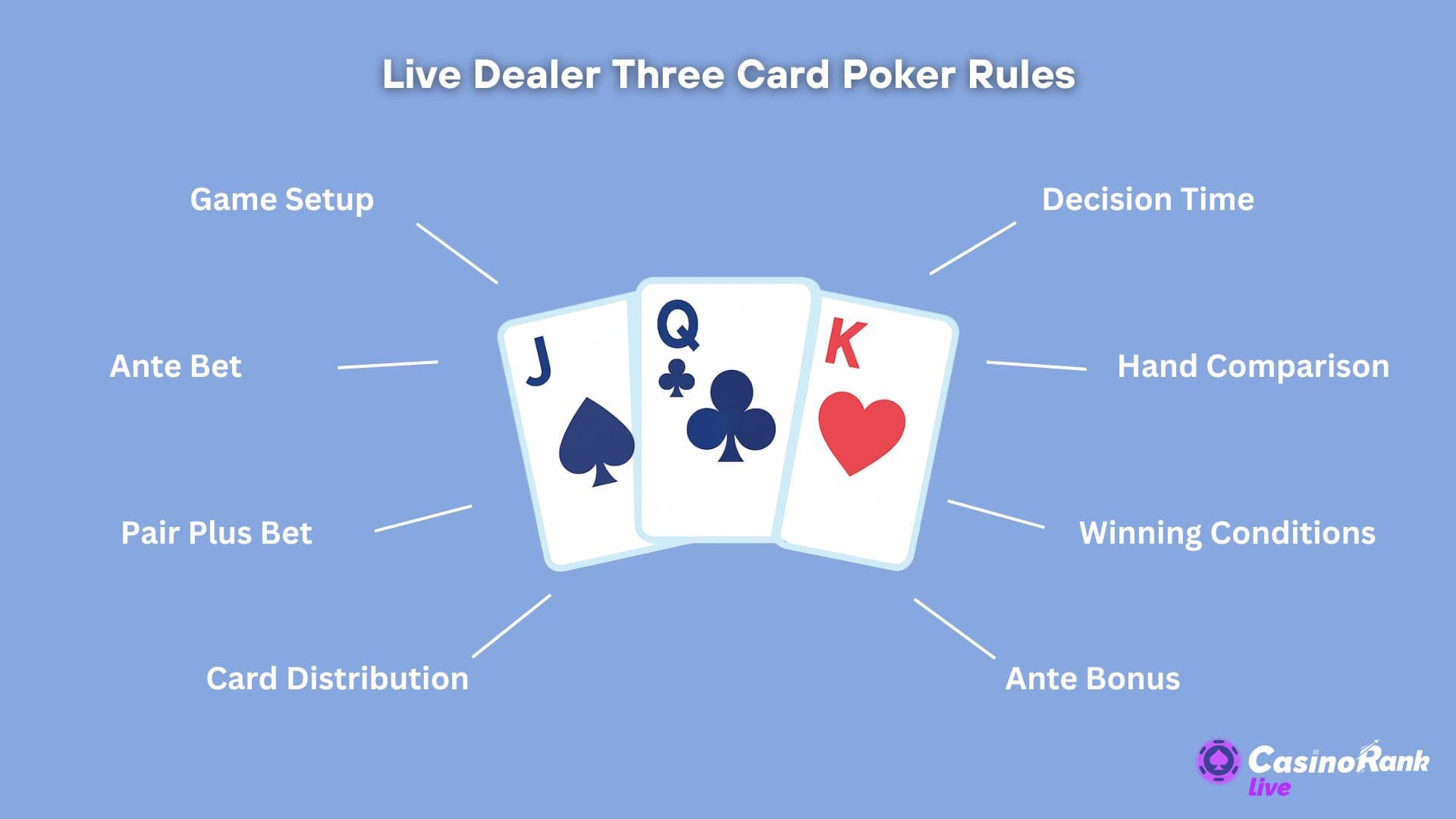 Understanding the rules of Three Card Poker is key before you start playing live. This game is loved for being simple yet strategic. Here’s how to play: