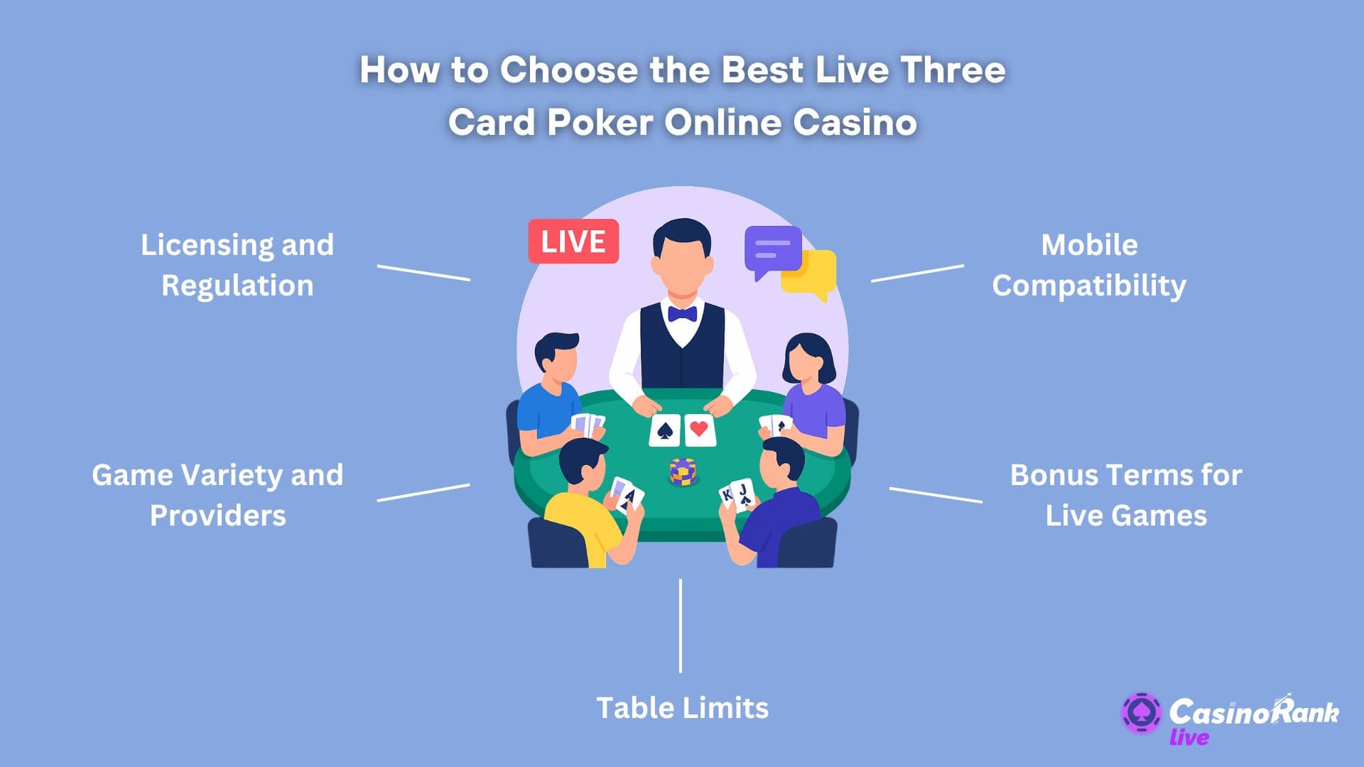 We also consider the software providers powering the live casino. Top developers like Evolution Gaming, Playtech, and Pragmatic Play Live are known for their top-notch Three Card Poker games with professional dealers, excellent streaming, and cool features.